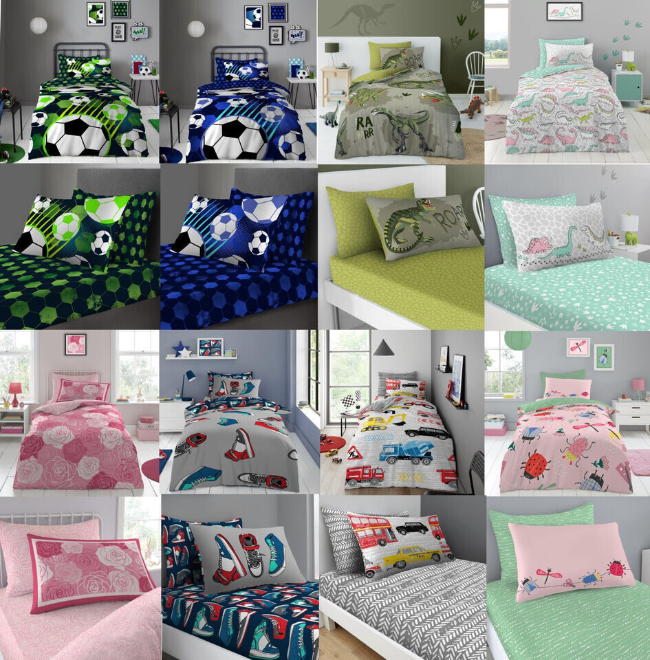 Kids Polycotton Single Duvet Cover Set Or Fitted Sheet With Pillowcase Children Boys Girls Reversible Bedding