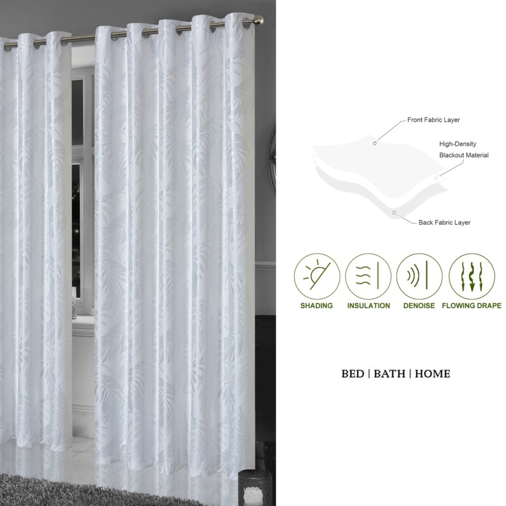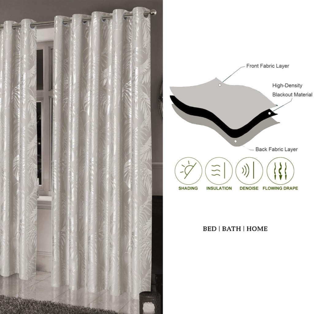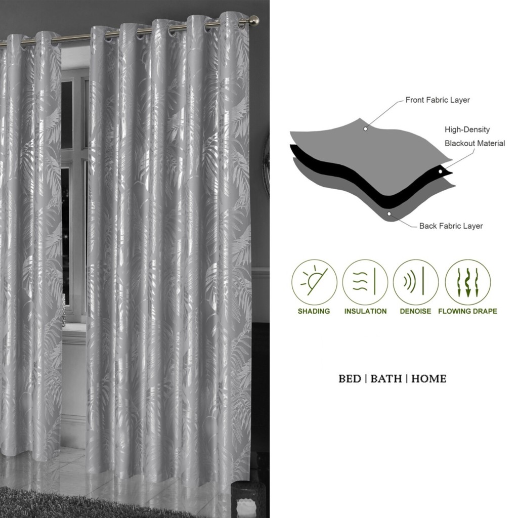 Leaf Foil Blackout Eyelet Pair Sparkle Curtains Metallic Thermal Ring Top 2 Panels