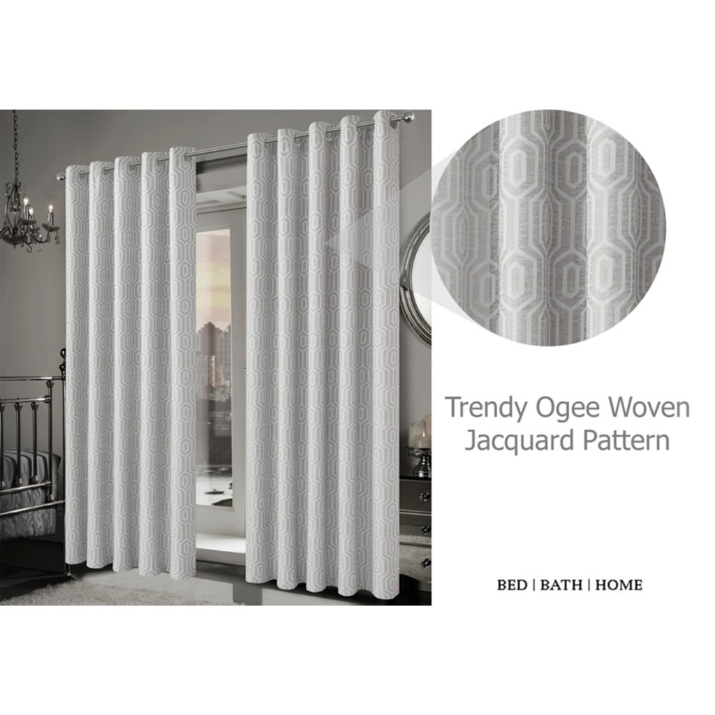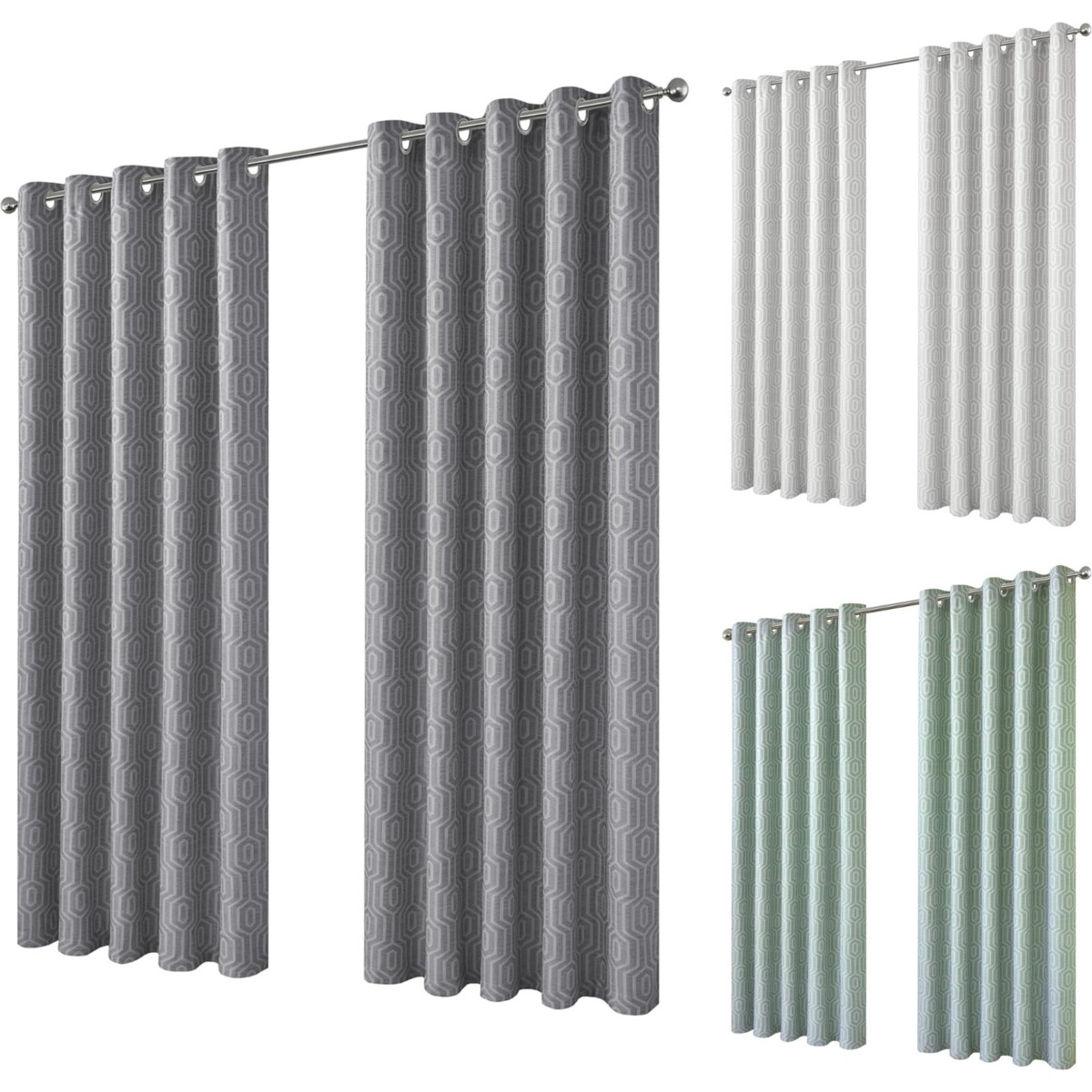 Paris Jacquard Pair Curtains Fully Lined Eyelet Geometric Damask Ring Top 2 Panel Set