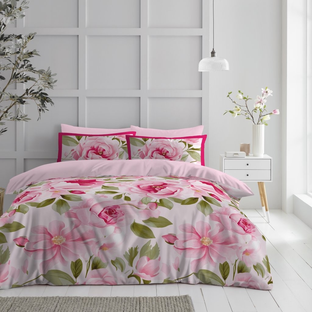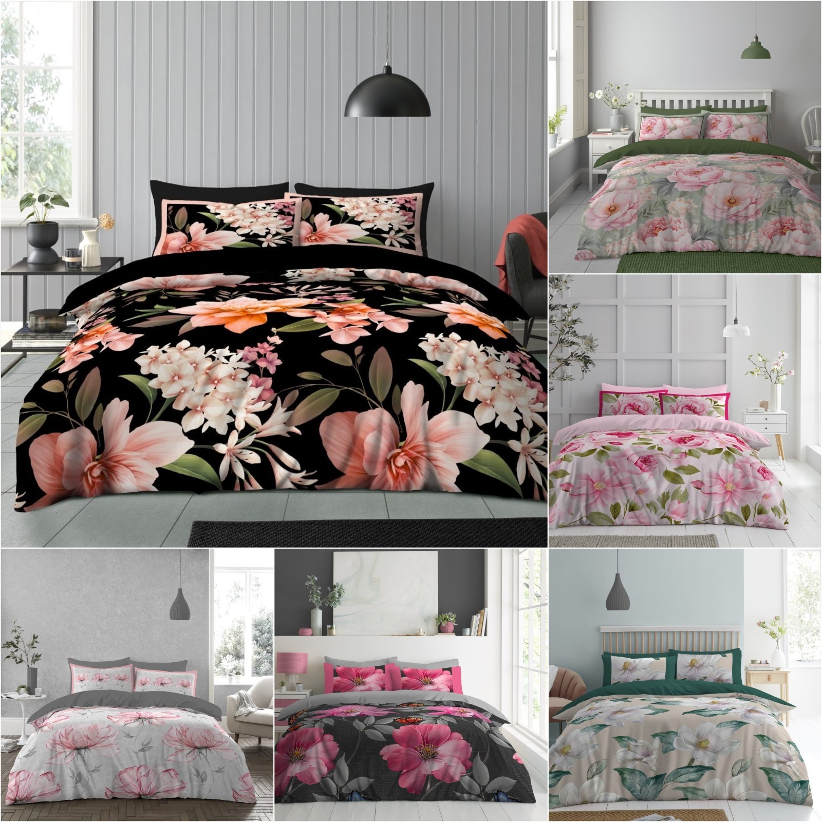 Printed Duvet Cover With Pillowcase Microfibre Reversible Bella Floral Bedding Set
