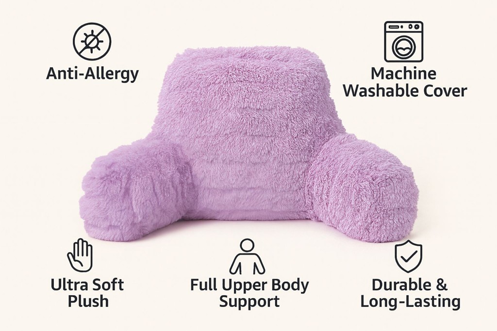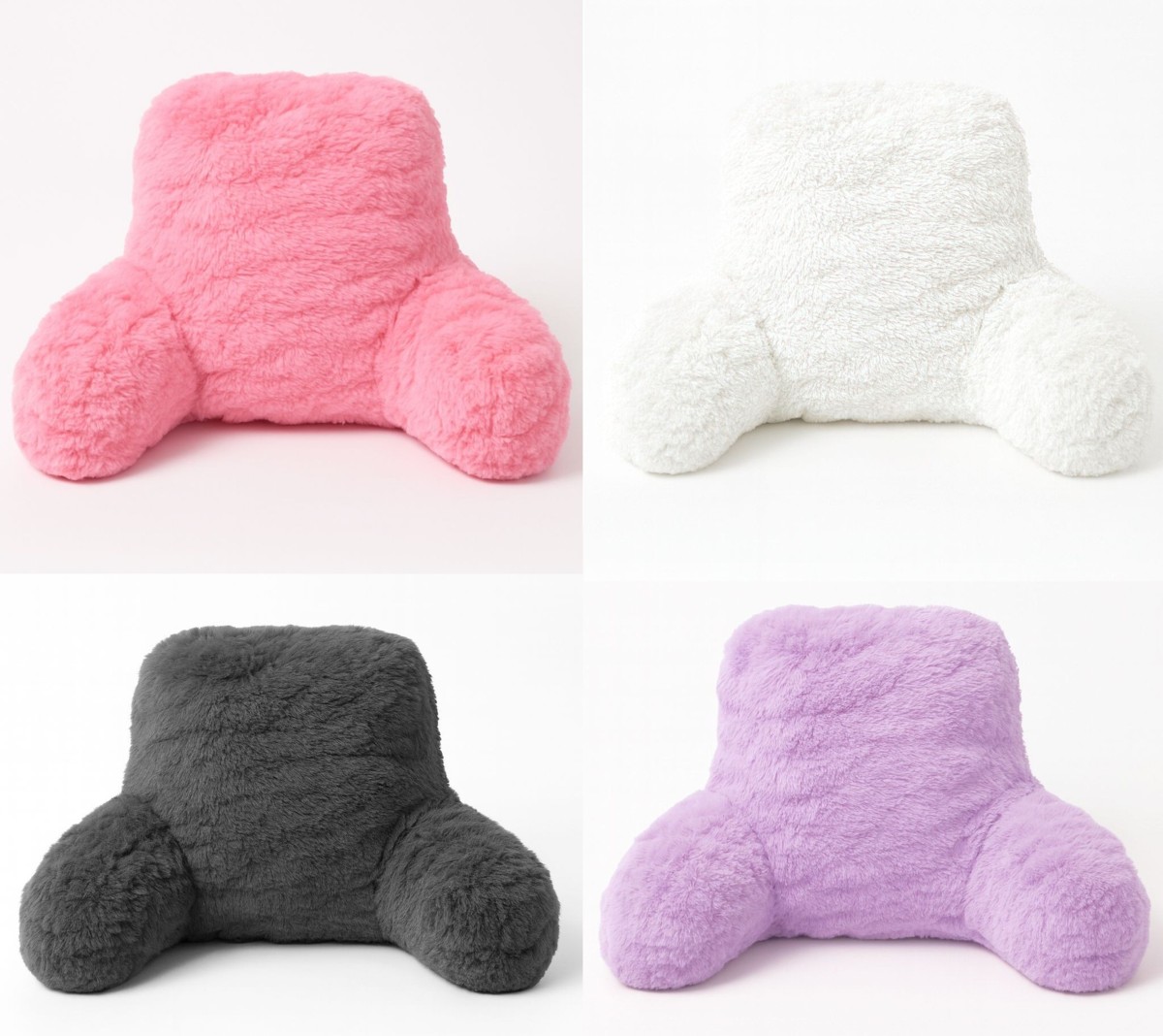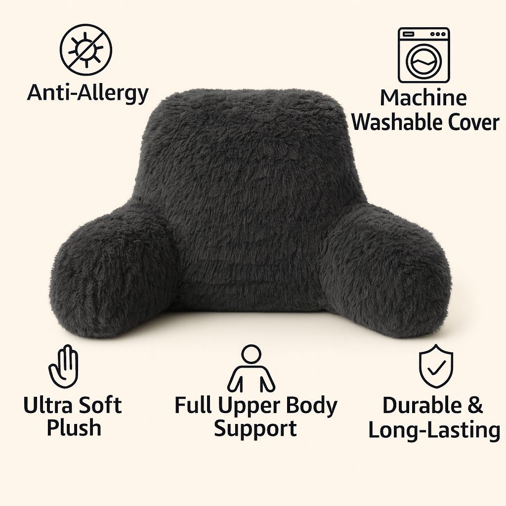 Reading Pillow Backrest Teddy Fleece Bed Rest Cushion with Arms for Comfortable Back Support