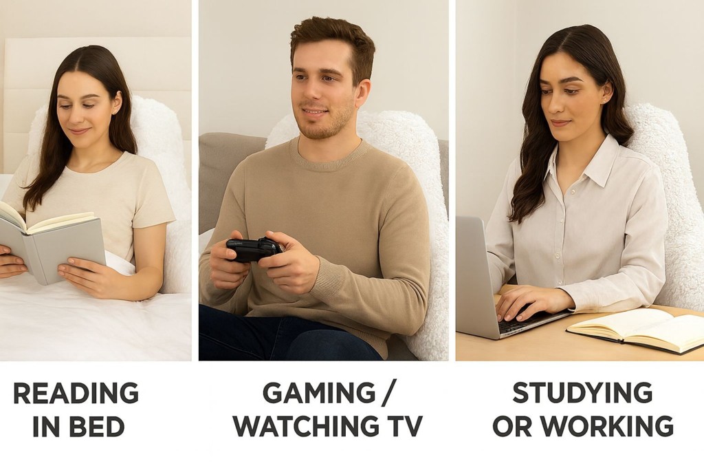 The ergonomic high-back design helps promote good posture and reduces pressure on your lower back, while the padded arms add extra comfort and stability. Lightweight yet supportive, this bed rest pillow is ideal for bedrooms, lounges, dorm rooms, or recovery use.