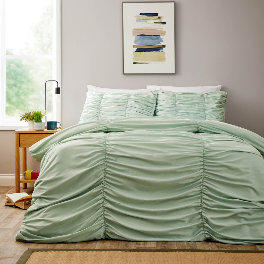 Ruched Duvet Cover With Pillowcase Ease Care Soft Ruffled Pleated Microfibre Bedding Set